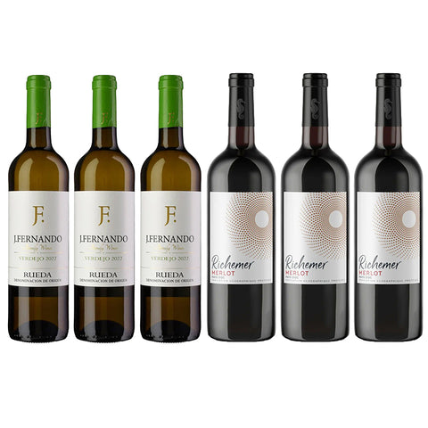 Dit borrelpakket is ideaal voor elke (vrijdagmiddag)borrel met collega’s, verjaardag of gezellige avond. Je krijgt twee heerlijke huiswijnen die altijd scoren: de frisse, aromatische Verdejo Rueda van Bodega J. Fernando en en de soepele en fruitige Merlot van Cave de Richemer. Toegankelijk, smaakvol en perfect om te delen. Met deze box haal je direct de borrelsfeer in huis!