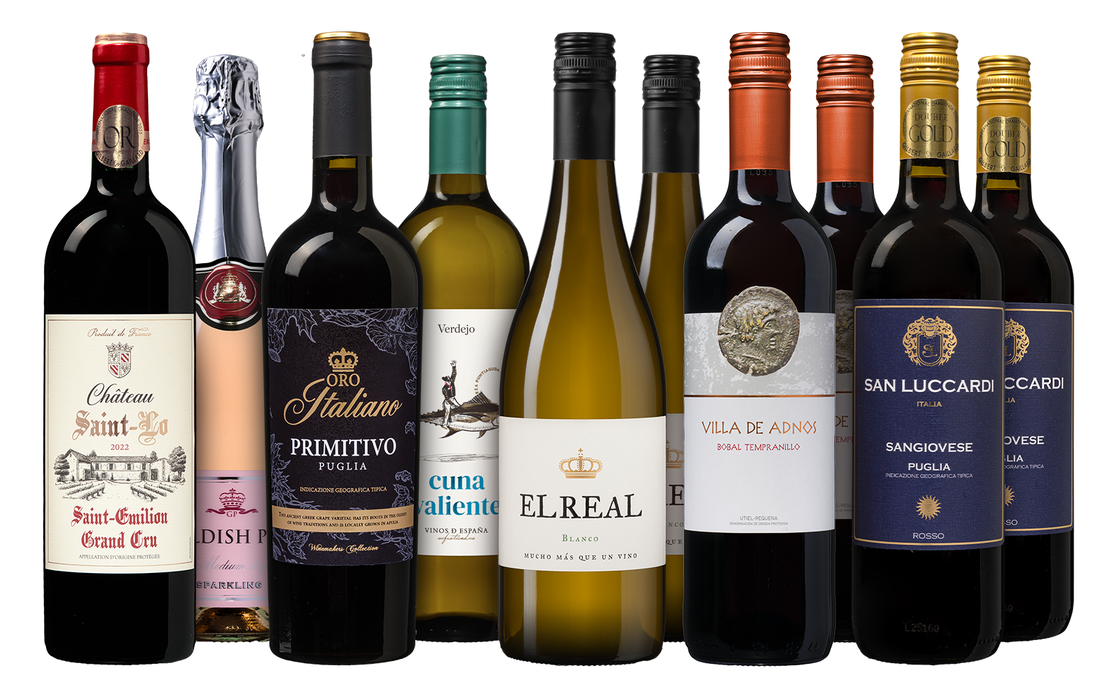 Het Grote Wijnvoordeel Wijnpakket is dé ontdekkingstocht voor iedere wijnliefhebber. Je proeft een bruisende mix van karaktervolle rode toppers zoals Tempranillo uit Spanje, sappige Italiaanse Sangiovese en rijke Primitivo, afgewisseld met frisse witte parels zoals Verdejo en een heerlijk zachte Blanco. Met een vleugje feestelijke rosé erbij is dit pakket ideaal om nieuwe favorieten te ontdekken en elke borrel nét dat beetje extra te geven.