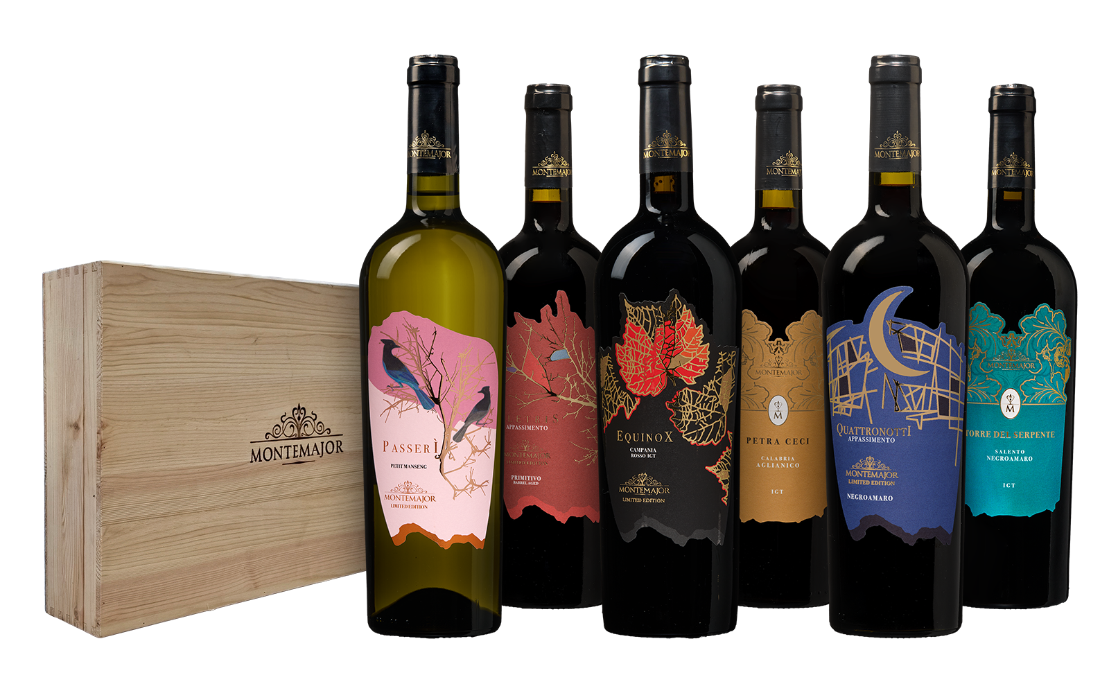 De Montemajor Wijnkist is Zuid-Italië op z’n rijkst: zes karaktervolle wijnen van wijnheld Mario “Super Mario” Ercolino, gebundeld in een luxe houten kist. Je proeft zwoele Appassimento-krachtpatsers uit Puglia, zijdezachte Aglianico-verleiders, een weelderige Campania-blend én een krachtige witte Petit Manseng met vulkanische frisheid. Alles ademt warmte, diepte en Italiaanse klasse. Dit is dé droomkist voor liefhebbers van intens, rijp en verleidelijk wijnplezier.